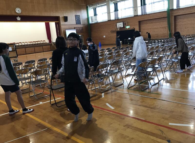 前日の今日、5時間目は開閉会式やステージへの上り下りなどのリハーサルをしました。