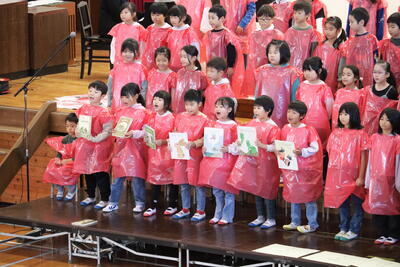 お次は5年生。集団宿泊教室で学んできた内容をまとめた「水俣から・・・」、合唱「地球星歌」を発表しました。