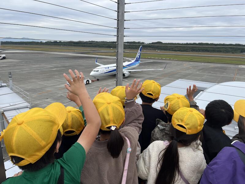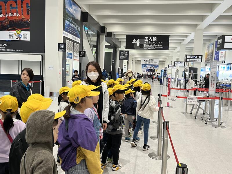 1年生が、国語科で学習している乗り物や働く人のことについて、さらに学びを深めるために阿蘇熊本空港を見学しました。