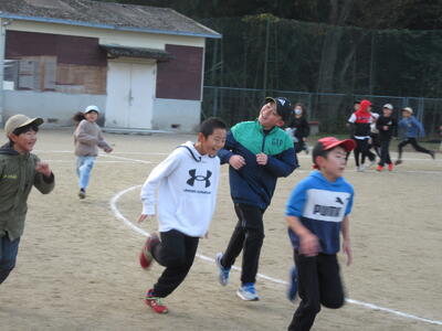 白い息を吐きながら、「手が冷たいです~」と言いながら顔を赤くして走っています。持久走大会までに少しずつ慣れて、体力がつくといいですね。