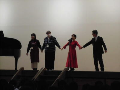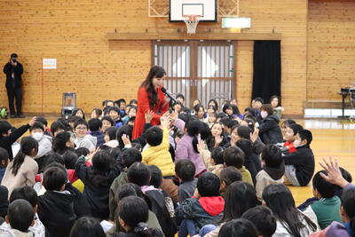 3・4時間目にみんなが楽しみにしていた、プロの歌手である そがみまこ さんによる「卒業生は語る」コンサートが行われました。そが みまこ さんは、ここ山西小学校の卒業生です。