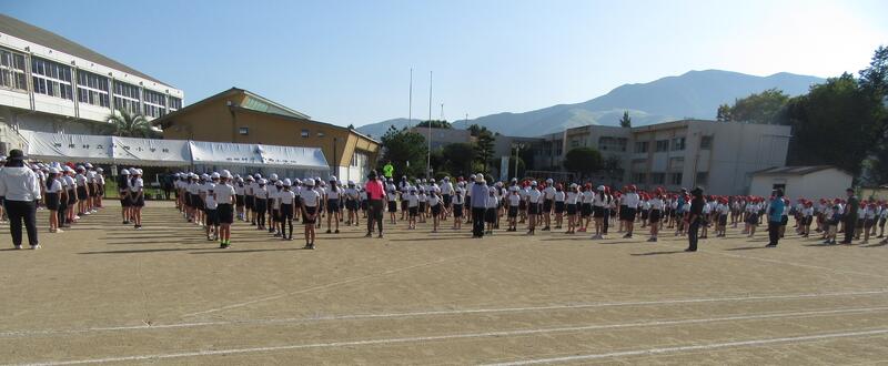 朝晩の涼しさとは打って変わった青空の下、今週土曜日に予定されている運動会の予行練習が行われました。暑い中でしたが、どの学年も どの競技も、子ども達ひとりひとりが一生懸命練習してきた成果がよく表れていました。本番が楽しみです。