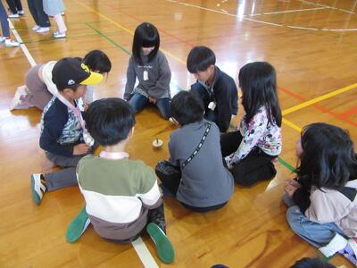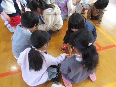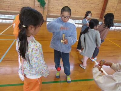 次に、1年生のお兄さんお姉さんと一緒に、昔遊びを楽しみました。