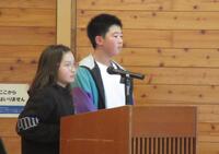 終業式の最初は、各学年の代表の、冬休みの思い出とがんばりたいことの発表です。