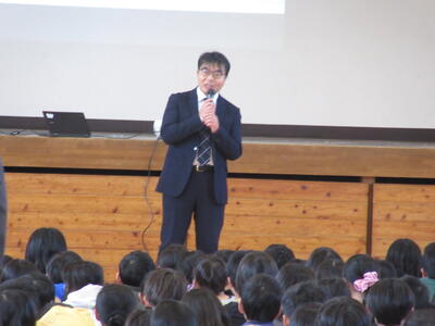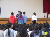 山鹿町出身で東京音楽大学在学中の鹿子木日向子さん(ヴァイオリン)とピアノ伴奏の方が演奏に来て下さいました。6年生は、素敵な演奏に聞き入っていました。