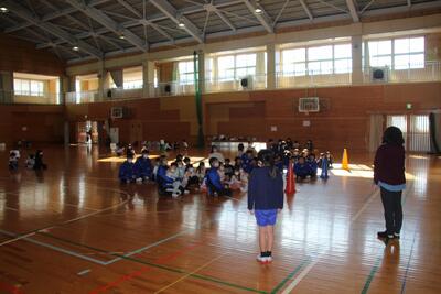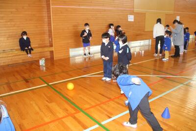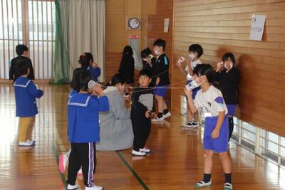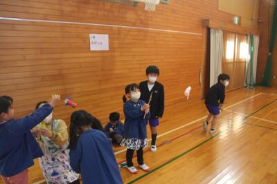 1・2年生は生活科の学習の一環として、保育園児との交流活動「秋パーティー」を行いました。 1年生児童は、どんぐりごまや松ぼっくりけん玉など、秋の自然を使ったおもちゃを工夫して作り、園児に楽しんでもらおうと準備してきました。当日は、園児と一緒に遊んだり、おもちゃの遊び方を教えたりする姿が見られました。園児の笑顔に、1・2年生も嬉しそうにしており、互いに楽しい時間を過ごすことができました。今回の交流を通して、児童は「人を喜ばせる楽しさ」や「協力することの大切さ」を学びました。秋の自然に親しみながら、心温まるひとときとなり、1・2年生の成長した姿をたくさん見ることができました。校区の3つの保育園児と先生方、ありがとうございました。