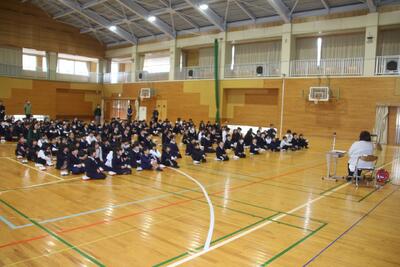 2学期の終業式を行いました。まず、3・6年生の代表児童が、2学期の学校生活で学んだことや3学期の抱負について作文発表を行いました。代表児童の言葉からは、2学期の努力と、次の学期に向けた強い意志がしっかりと伝わってきました。次に、八代スピリッツの「あいさつ・聞き方・そろえ方」について振り返りました。児童は、日々の学校生活の中で意識して取り組んできた自分たちの成長を確かめることができました。一方で、廊下の右側歩行が今学期の課題として挙げられました。右側を歩く習慣は、学校内の安全だけでなく、将来の交通ルールを守る姿勢にもつながる大切な行動です。3学期に向けて、全校で改善していくことを確認しました。さらに、児童の頑張りをたたえるために、校長が作成した動画「八代っ子は美しい」を視聴しました。2学期のさまざまな場面で見られた児童の“美しい姿”が映し出され、児童は自分や友達の良さを再認識していました。視聴後には、自然と笑顔が広がり、自己肯定感が高まる様子が見られました。最後に、各コンクール等で入賞した児童の表彰を行いました。2学期の学びと成長を胸に、児童が3学期も前向きに取り組んでくれることを期待しています。地域や保護者の皆様、児童の成長を支えていただき、ありがとうございました。