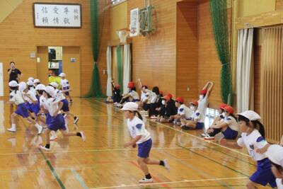 初めての「シャトルラン」をしました。6年生がお手本を見せてくれた後、頑張りました。