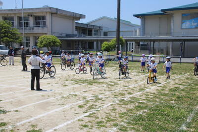 5月13日に交通教室がありました。3年生は、3時間目に体育館で警察署の方の話を聞き、とうふを使った実験などを見た後に、4時間目は運動場で実際に自転車に乗って講習を受けました。皆、一生懸命自転車に乗って、安全な運転の仕方を練習しました。3年生は、今回の交通教室より、保護者の方の許可があれば、1人でも自転車に乗れるようになります。