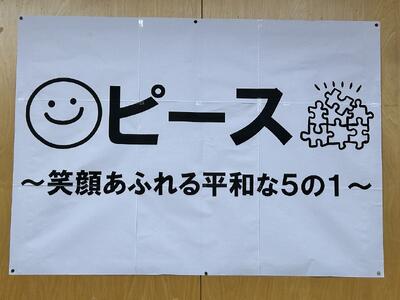 全ての言葉や思いをまとめ、完成したの学級目標が『ピース』です。「みんなが笑顔で過ごせる学級」「一人ひとりが自分の力を発揮できる学級」「困ったときに助け合える学級」このような思いが含まれています。