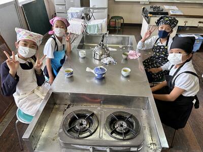 5月1日(木)の家庭科の学習で、お茶を入れました。