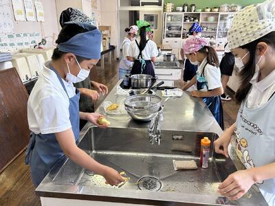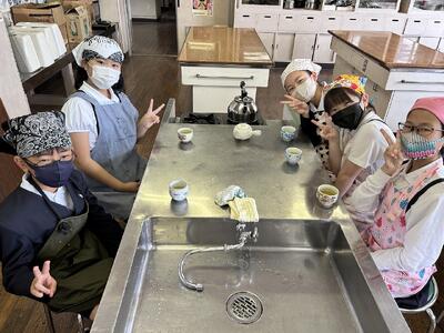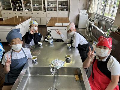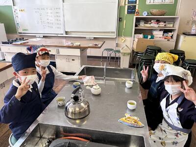 「おいしい!!」という声が笑顔とともに家庭科室に響いていました。