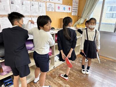 11月28日(金)に家庭科の学習で、整理整頓お片付けについて学びました。