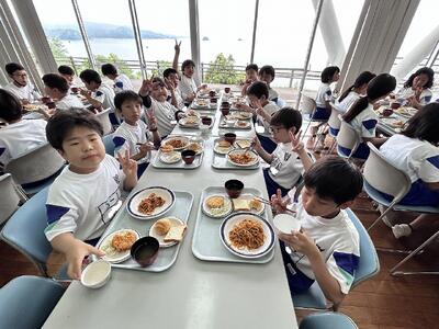 昼食のメニューはナポリタン!食事は毎回子どもたちが大好きなメニューでした。