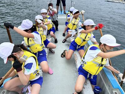 艇長のかけ声に合わせて「1,2,3!」と大きな声を出して協力して漕ぎました。