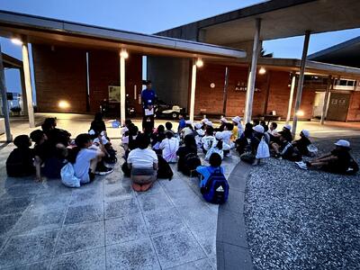 ドキドキのナイトゲーム! 怖さを吹き飛ばすために大きな声で歌いながら歩く班もありました。