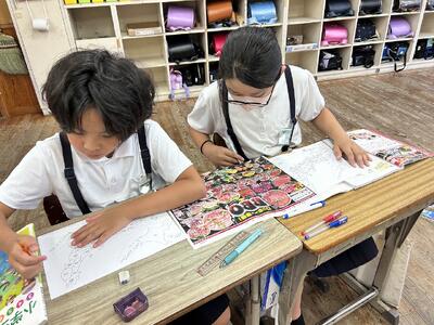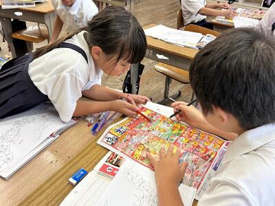 今日は色付けの作業でした。色を重ねて塗り、立体感を出し、高学年らしい作品ができあがってきています。