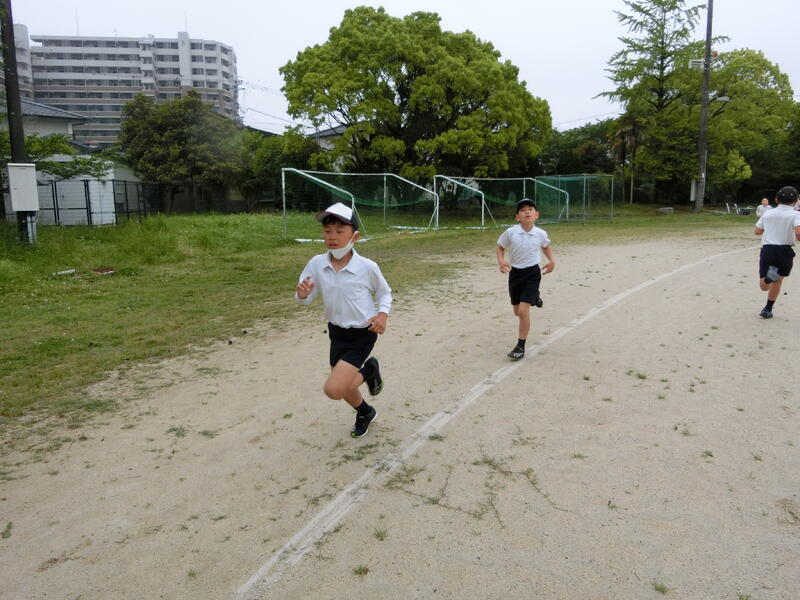 5年生は月曜日の朝7:50から10分間走ります。今週はみんな外に出てきて一生懸命頑張りました。