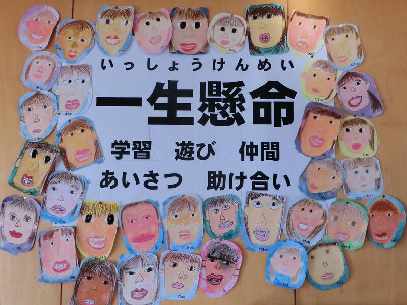3年生の図工の時間に自分の顔を描きました。「鼻はどんな形?」「眉毛はふさふさしているね!」など、自分の顔を触ったり観察したりしながら描きました。みんな自分そっくりなお顔になりました。学級目標と一緒に教室後方に掲示したいと思います。授業参観の折にぜひご覧ください。