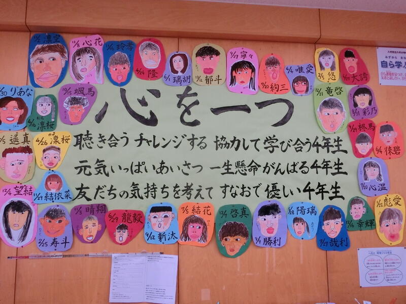 (学習)聴き合う チャレンジする 協力して学び合う 4年生