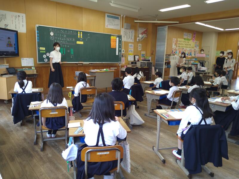 フィールドワークのため、大学4年生が本校の3年生と4年生のクラスに入られました。1週間だけでしたが、業間の時間に子供たちと一緒に遊んでくださったり、授業中に声掛けをしてくださったりしました。子供たちは、5日間という短い時間でしたが、教育実習の先生と一緒に遊んだり、話したり、学習できたりできて嬉しかったと思います。