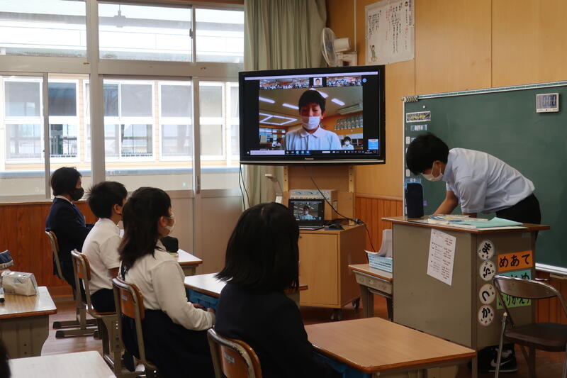 子供たちも笑顔で交流していました。日々、子供たちの外国語の授業への積極的な姿勢を感じています。