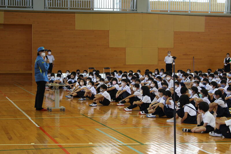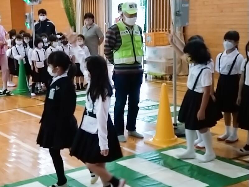 5月9日(月)に低学年の交通教室がありました。安全協会の方々が来てくださり、お話を聞いたり、実際に設営してくださった横断歩道を歩いたりしました。信号が青でも車が来ていないか、よく見ながら渡ること。また、その際歩いて渡ること、運転手さんの顔を見て渡ることなど、子供たちの登下校に大切な学びが多くあった1時間でした。大切な大切なたった一つの命。子供たちが自分できちんと守れるようにご家庭でも今一度お話されてみてください。