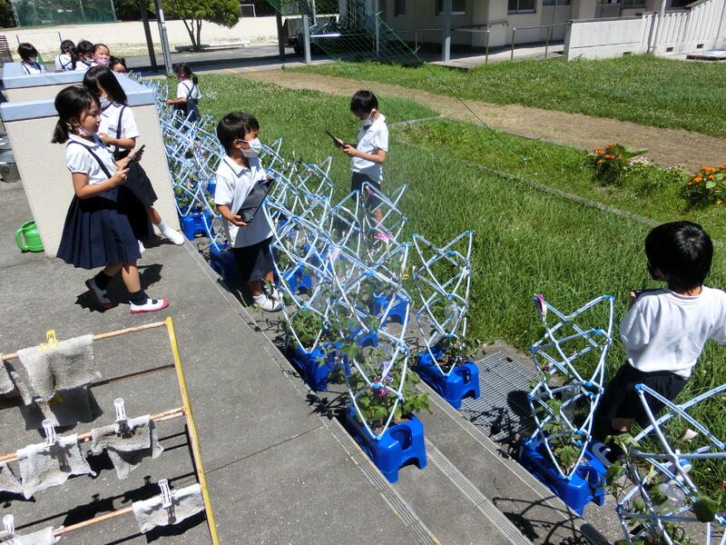 5月10日に生活科で植えた朝顔が芽を出しました。「先生、芽が出てます!」とうれしい声が聞こえてきました。みんな大喜びで、朝顔のところに走っていきました。毎朝、子供たちがしっかり水やりをしてお世話をしています。