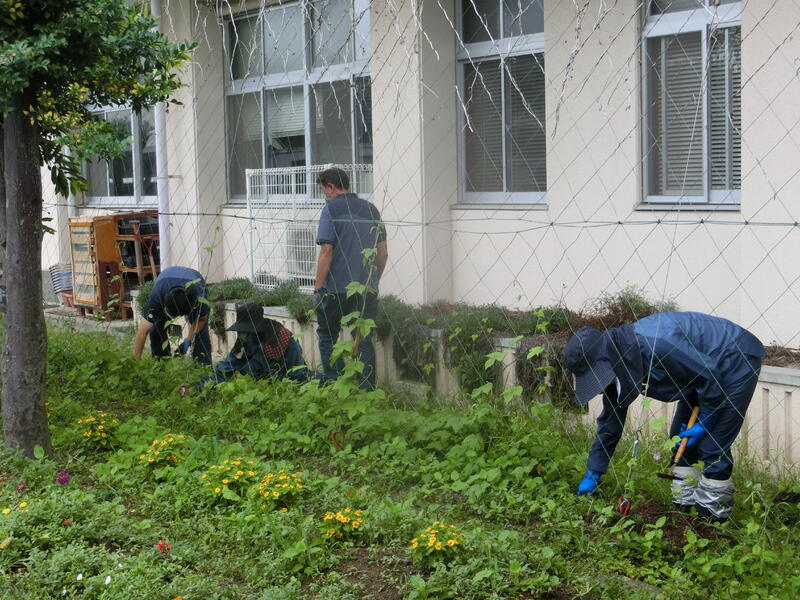 また、すぐに子供たちが植えられるようにと花壇の草取りもしていただきました。