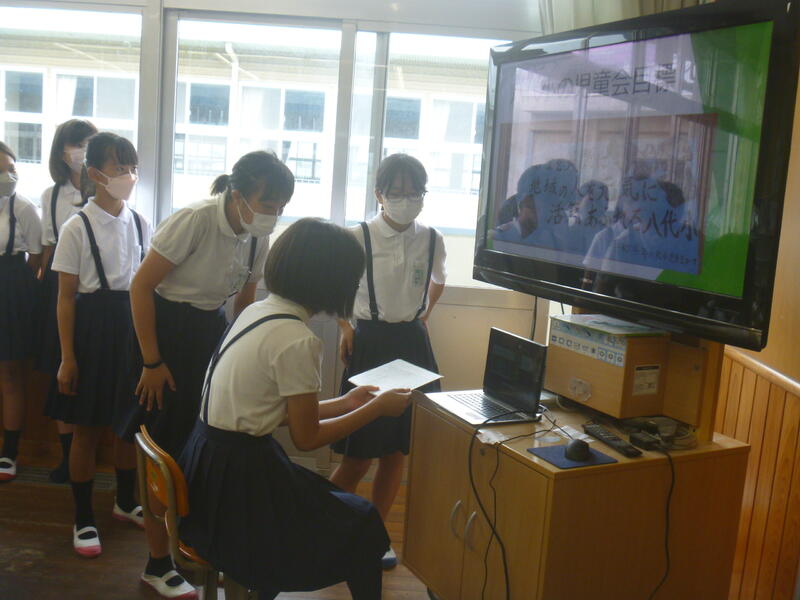 夏休みに、一中、松高小、代陽小、八代小の児童会生徒会の子供たちが集って、オンライン交流会を行いました。