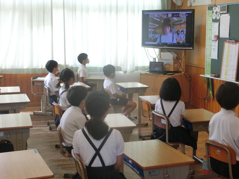 給食の時間に1学期の「zoomで音楽会」を行いました。