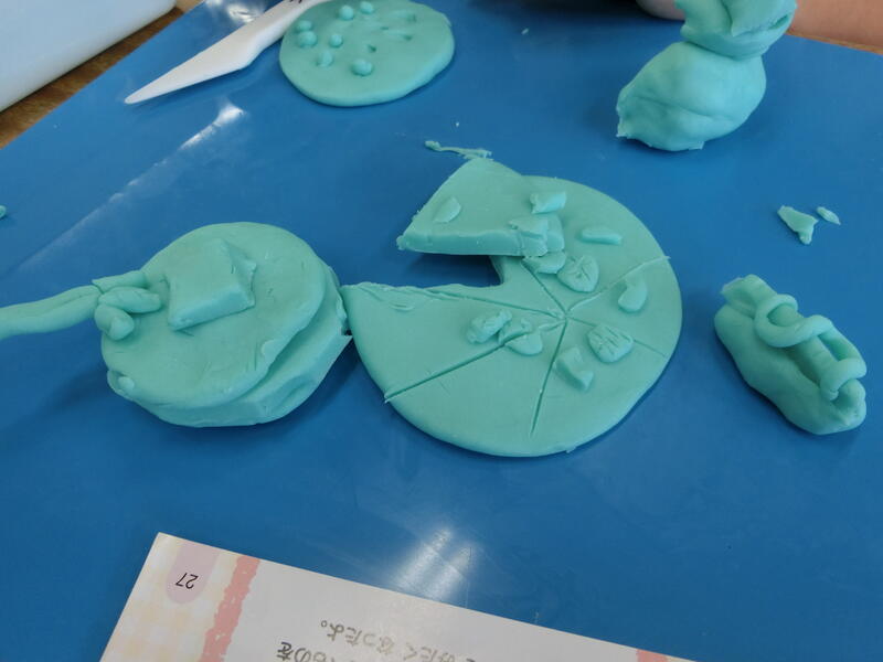 1年生の図工「ごちそうパーティーをしよう!」で、ねんどを使ってごちそうを作りました。