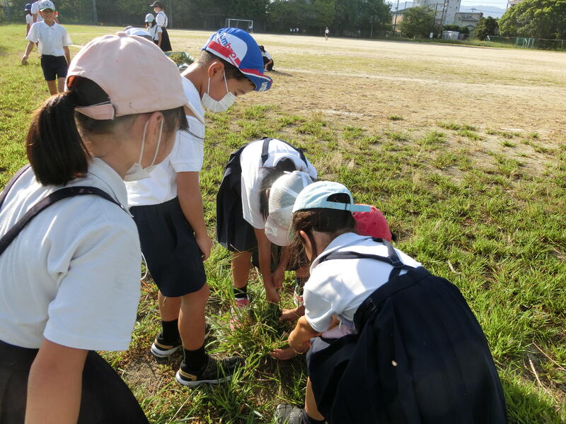 生活科で「むしとなかよし」の学習をしていますが、子供たちは上手に虫を捕まえています。中には、帽子で素早く捕まえたり、素手で捕まえたりする子供もいてびっくりしています。