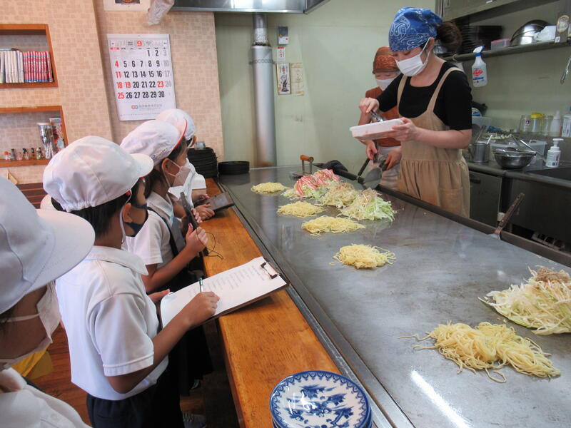 やきむぎや、おこのみやきマンマル、本田写真館、八代警察署、市立図書館の5つのグループに分かれ、質問をしたり、写真を撮らせていただいたりと多くの発見をすることができました。この新しい発見を次の学びに生かしていきたいと思います。