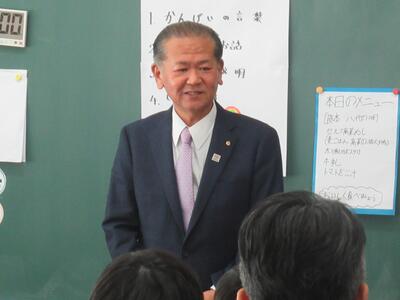 会は、児童代表の歓迎の言葉に続き、中村市長様のご挨拶、栄養教諭のよる給食メニューなどの説明、会食、お礼の言葉と続きました。