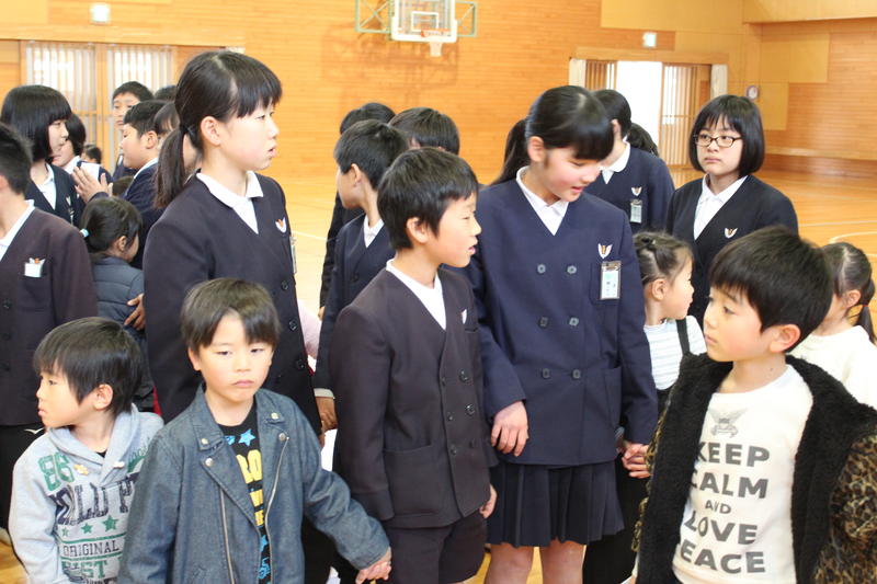 6年生はペアの1年生の手をしっかり握って、一生懸命話しかけながら楽しそうに歩いていました。