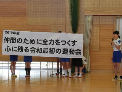 児童会から運動会のテーマ発表の後、応援団員の気合いの入ったかけ声でいよいよ本年度の運動会練習スタートです!