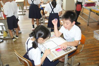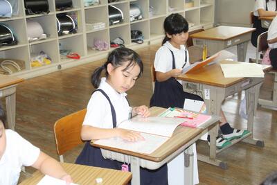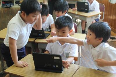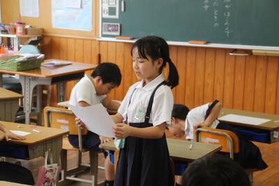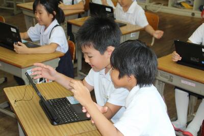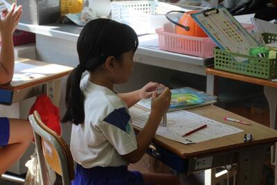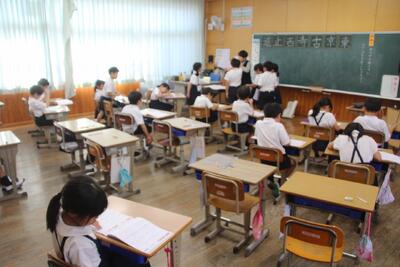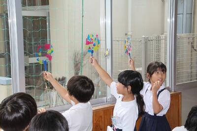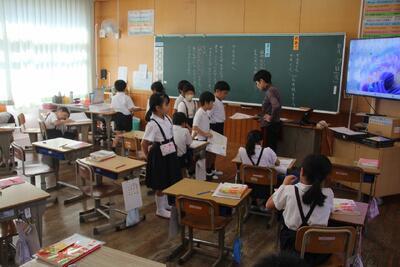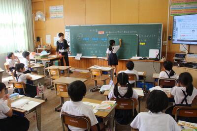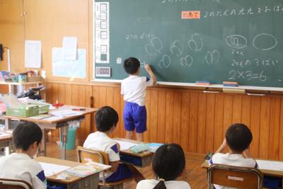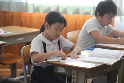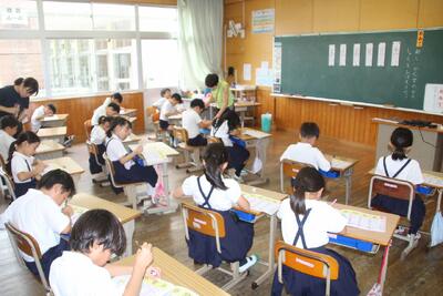 八代小教育目標:「自分も人も大切にする、自ら学ぶ子供」