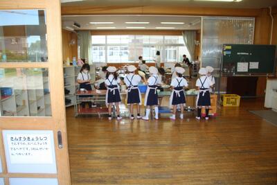 今日の献立は、麻婆春雨・野菜のピリ辛・ごはん・牛乳でした。 代わりの教室は、給食室のすぐ近く。 |