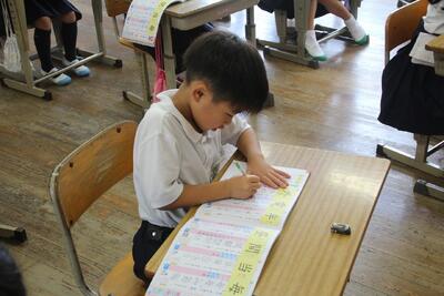 | 毎日の宿題「計算カード」を、気合いを入れてがんばりましょう。 |