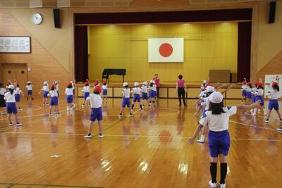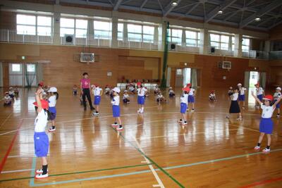 運動会のダンスの練習がはじまりました。1.2年合同体育です。 |