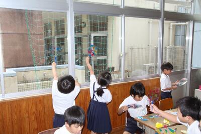 ”ひかりを通してステンドうちわ” 作りをしました。 |