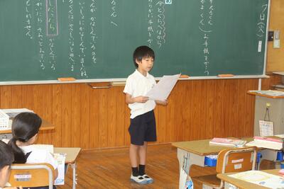 かえるくんへ がまがえるくんへ お手紙を書きました。自分だったら・・・という言葉を入れて、文を膨らませました。 |