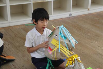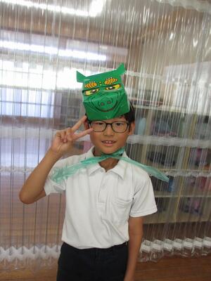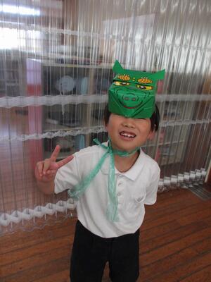 この「オリガメ」を頭につけて、最後ダンスをします。 可愛いダンスを披露してくれることでしょう! |