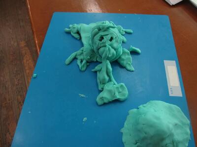 立体 の作品にチャレンジ ライオンに人間が食べられているところ だそうです。 |