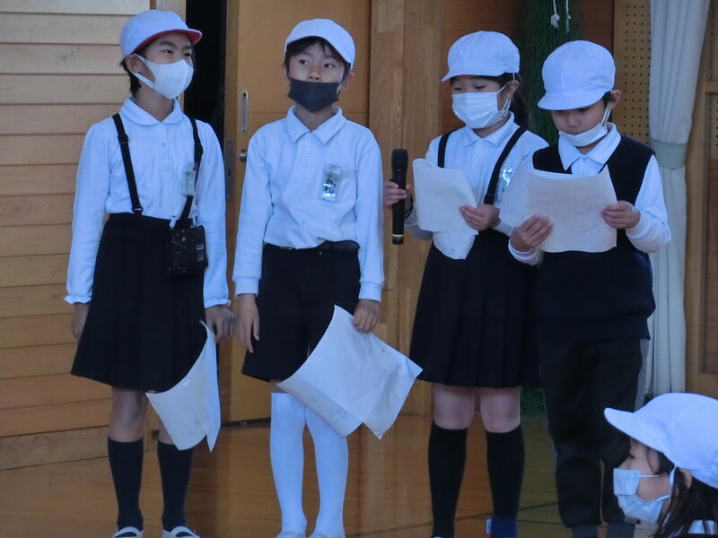 各委員会の委員長による頑張り目標や運営委員会による児童会スローガンの発表がありました。