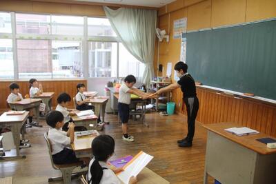 全学年に通知表を配付いたしました。本校では、評価の二期制を採用しており、今回の通知表は前期(4月~9月)の学習や生活の様子を振り返るものです。特に1年生にとっては、初めての通知表となります。入学から半年間、学校生活に慣れながら、学びに向かう姿勢や友達との関わり方など、日々成長を重ねてきました。通知表には、そうした一人ひとりの努力や伸びが記されています。通知表は、単なる成績の記録ではなく、これまでの歩みを振り返り、これからの成長につなげるための大切な資料です。ぜひご家庭でも、お子様の頑張りを認め、励ましの言葉をかけていただければと思います。そして、今後の目標や課題についても、前向きに話し合う機会としてご活用ください。後期も、児童一人ひとりが自分らしく輝けるよう、教職員一同、丁寧に支援してまいります。
