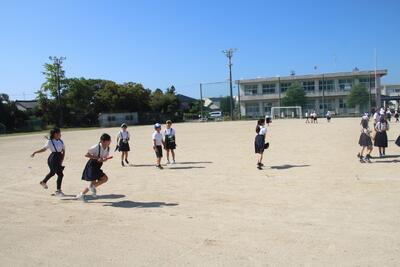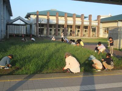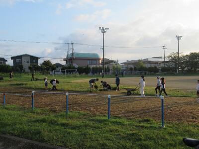 10月初旬のさわやかな朝、本校ではPTA主催による「愛校作業」が行われました。保護者の皆様と児童が早朝から参加し、学校の環境美化にご協力いただきました。運動場や学校園では、草刈り機による作業と手作業による草取りが並行して行われ、親子で声をかけ合いながら丁寧に取り組む姿が見られました。作業後には、運動場や学校園がすっきりと整い、学校全体が明るく清々しい雰囲気に包まれました。保護者の皆様の温かいご協力に心より感謝申し上げます。今後も、地域とともにある学校づくりを大切にしながら、児童が安心して過ごせる環境整備に努めてまいります。近隣住民の皆様、早朝より草刈り機の音でご迷惑をおかけし、申し訳ありませんでした。