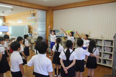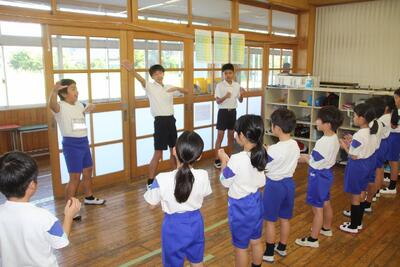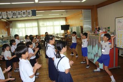 運動会に向けて、朝の時間を活用した「赤白応援練習」が始まりました。高学年の応援リーダーたちが中心となり、1~4年生の教室をまわって、応援の動きや声の出し方を教えています。応援リーダーは、下級生にわかりやすく動きを伝えたり、手拍子のタイミングを教えたりと、頼もしい姿を見せてくれています。1~4年生も、リーダーの話をよく聞きながら、笑顔で練習に取り組んでいます。朝の短い時間ではありますが、学年を越えた交流が生まれ、学校全体が一つになって運動会に向かっていることを感じられる、すがすがしいひとときとなっています。本番の応援合戦では、児童たちの心をひとつにした力強い応援が響き渡ることでしょう!