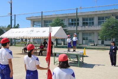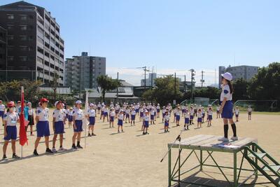 運動会に向けた第1回目の全体練習を行いました。青空の下、全校児童が一堂に会し、入場行進・開会式・閉会式の流れを確認しながら、心をひとつにして取り組みました。入場行進では、胸を張って堂々と歩く姿が印象的で、児童たちのやる気と成長が感じられました。開会式では、代表児童の力強い誓いの言葉が響き渡り、運動会への期待が高まります。閉会式の練習では、最後まで気を抜かず、「みんなで力を合わせて作り上げる運動会」という意識が全体に広がっていました。これから本番に向けて、各学年・各種目の練習が本格化していきます。児童たちが互いに励まし合いながら、協力・挑戦・達成感を味わえる運動会になるよう、学校全体で準備を進めてまいります。
